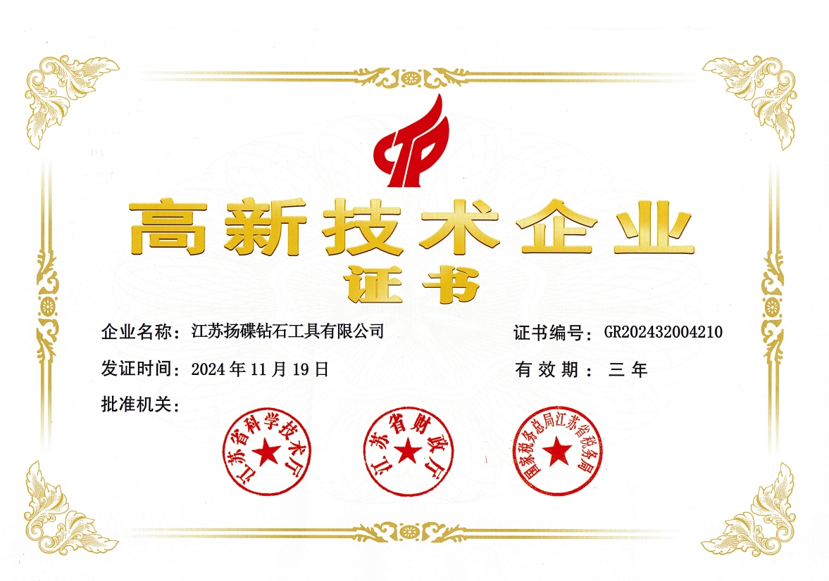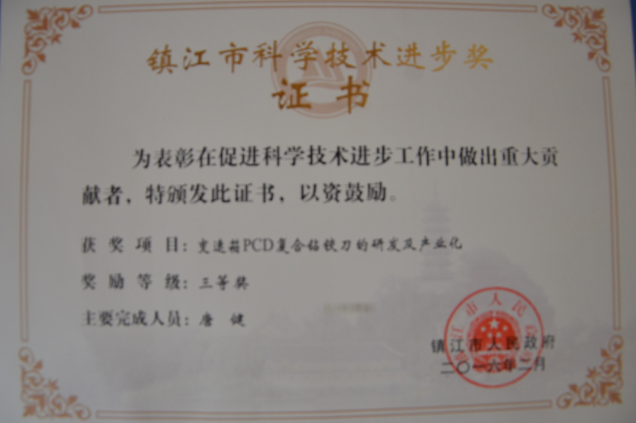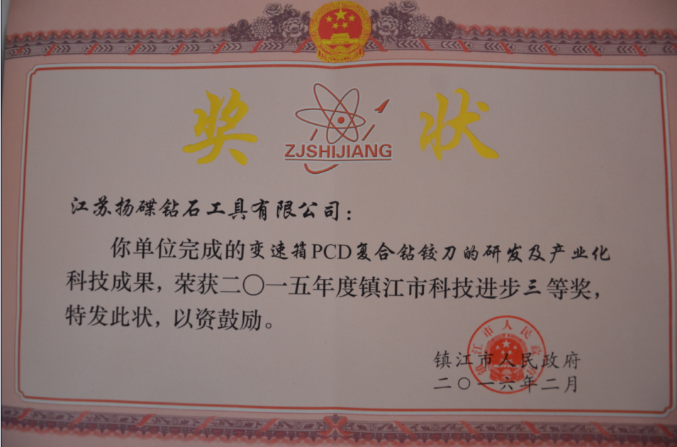 多年來,企業(yè)通過ISO9001國際質(zhì)量體系認證,被中國中輕產(chǎn)品質(zhì)保中心授予“全國金剛石制造行業(yè)質(zhì)量放心滿意單位”,獲得江蘇省高新技術(shù)企業(yè)稱號,榮獲江蘇省小巨人稱號,變速箱PCD復合鉆鉸刀獲省高新技術(shù)產(chǎn)品等等。